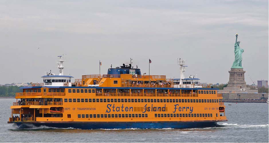 [ステタン島フェリー]は、365日24時間営業している。96%は時間通りに航行している。フェリーは、1905年からニューヨーク市が運営しており8.4㎞の距離を、毎年2,100万人をも輸送している。所要時間は約25分、料金は無料である。乗客は、どちらかに上陸しなければならず、沿岸警備隊などの規則により、往復する場合でも、一度ゲートの外へ出てからもう一度乗船しなければならないとされている。昔は自転車も1台3$で積み込めたが、アメリカ同時多発テロ以来は許可されていない。フェリーの料金は、もともとニューヨーク市地下鉄と同じ5セントだった。1948年に地下鉄の料金が10セントに値上げされてからも、そのままであった。1970年には、当時の市長、ジョン・リンゼイが値上を提案し、1975年8月4日に、25セントとなった。1990年には50セントまで値上がりしたが、1997年からは無料化された。